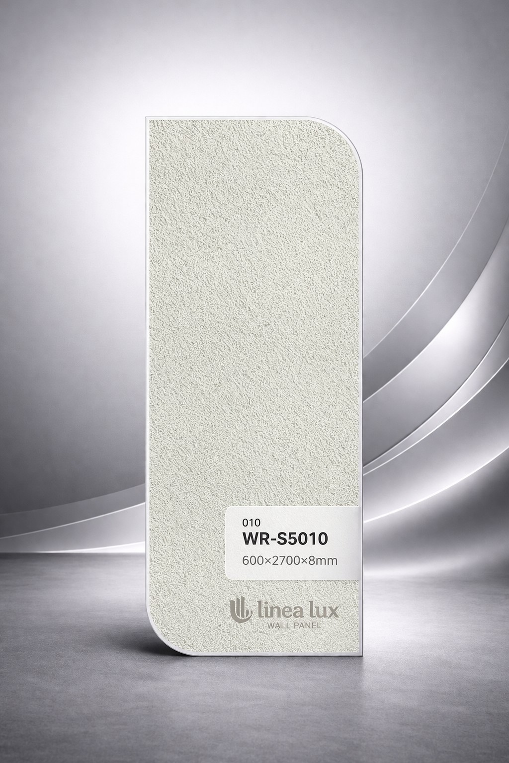 Dekor LineaLux představuje sofistikovanou kombinaci světlého grafitu s jemným metalickým podtónem, který se mění v závislosti na světle. Strukturovaný povrch vytváří subtilní hru stínů a dodává panelu exkluzivní, téměř sametově industriální charakter.